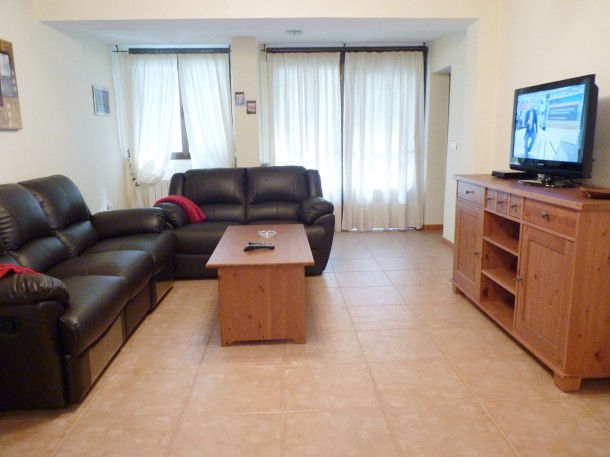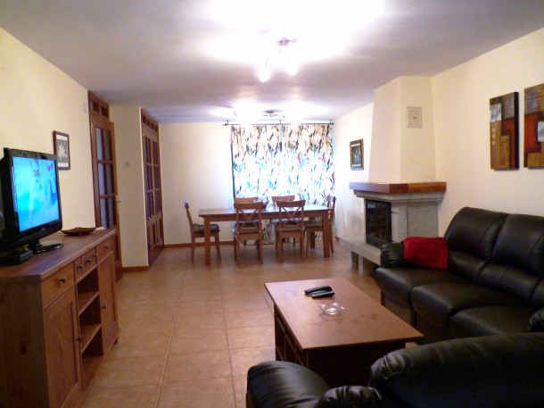 SALON de 40 m2, cuenta con chimenea de leña, calefacción, sofás de 3 y 2 plazas, mesa de comedor (8-12 plazas), TV con TDT, DVD, y salida al jardín.