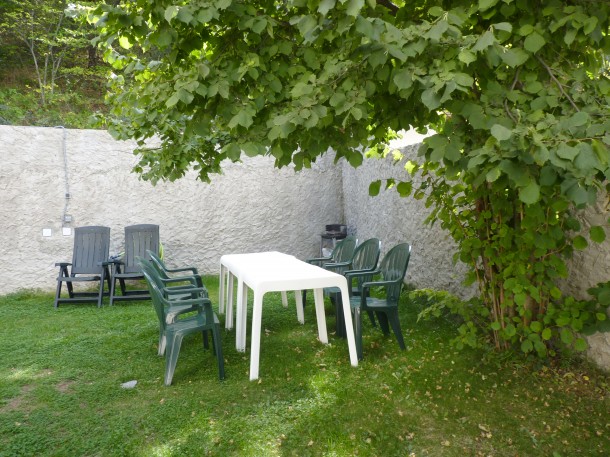JARDÍN privado de 120 m2 con césped, ideal para recreo de niños y adultos así como para comer al aire libre. Dispone de muebles de exterior y barbacoa. Con acceso desde el salón y entrada para vehículos