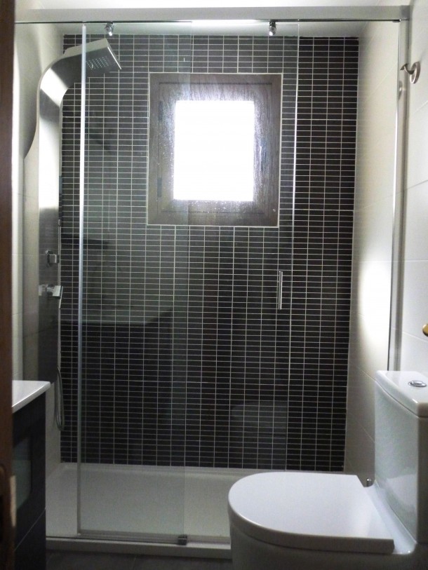 BAÑO completo, con plato de ducha amplio de 1,50 m, columna de hidromasaje y calefacción.